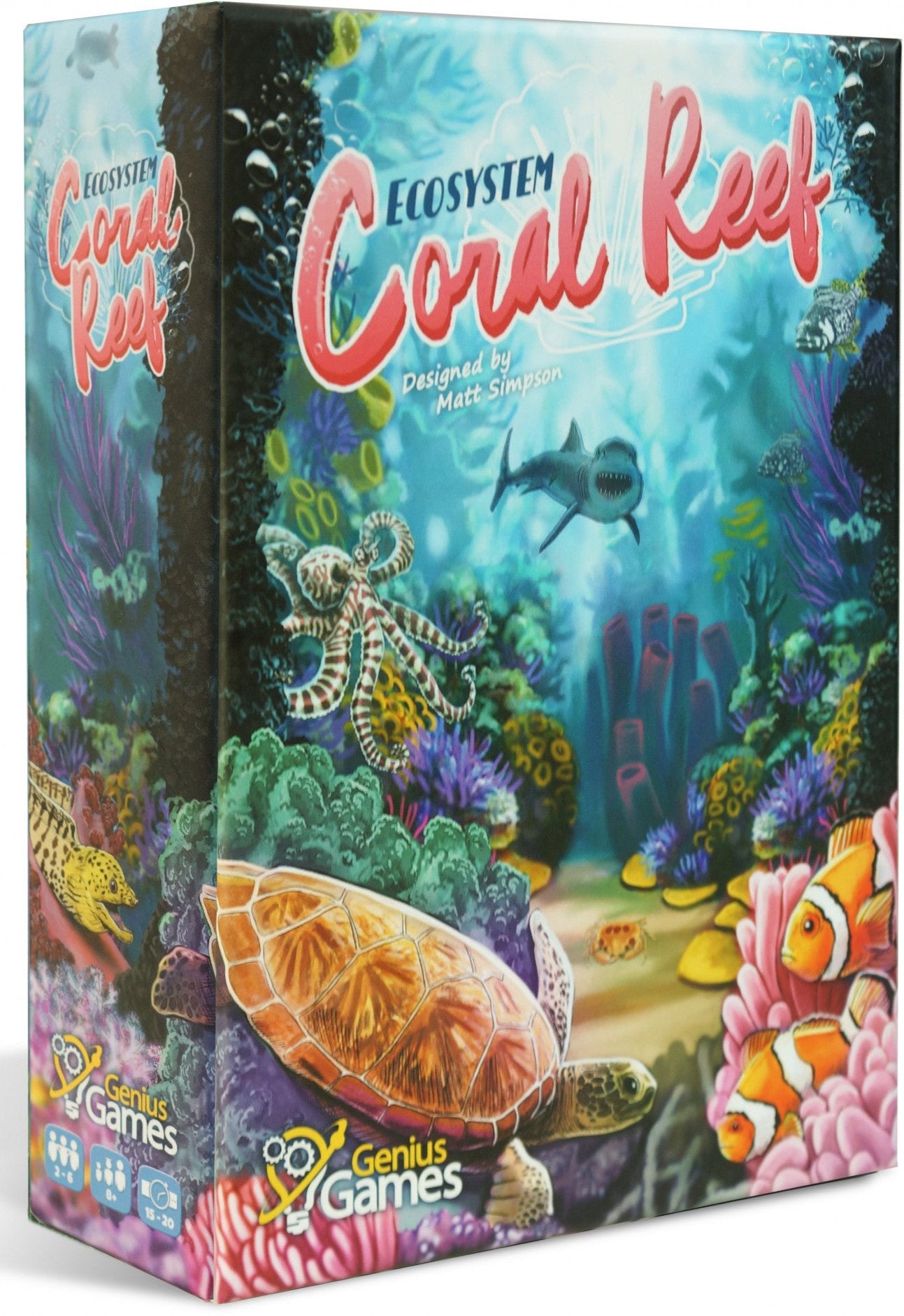 Ecosystem: Coral Reef, is a card drafting game where the players are choosing cards and placing them into their play area turn by turn. The cards in a player's grid make up their own personal marine ecosystem, and the player who has the most efficient ecosystem will be the winner.